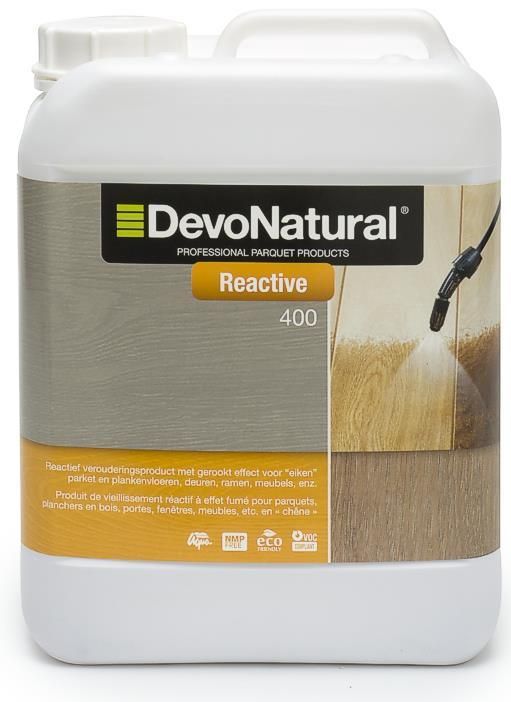 Apply only to oak! DevoNatural Reactive is a reactive aging product available in 2 concentrations: 400 and 600. The higher the concentration, the more powerful the reactive aging will be. When used on oak, DevoNatural Reactive makes the wood age naturally. The effect can vary, depending on where the wood was grown, as well as the type and diversity of the oak. The tannic acid levels in the oak determine the chromatic effect!